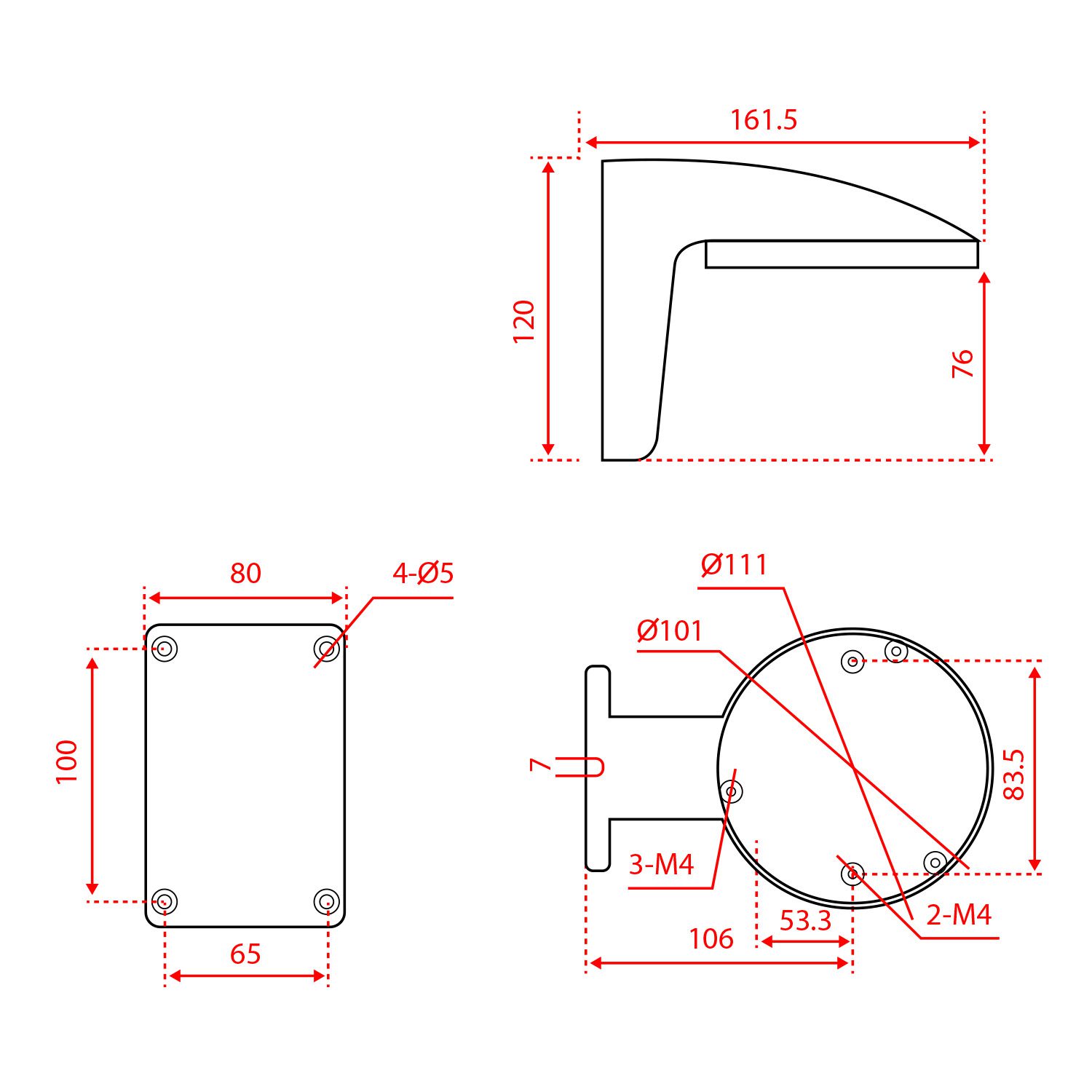 Suporte de parede – Para câmaras dome – 120 (Al) x 111 (Lg) x 161 (Pf) – Carga máxima 1 Kg – ABS+PC / Cor branca – Compatível com Hiwatch Hikvision