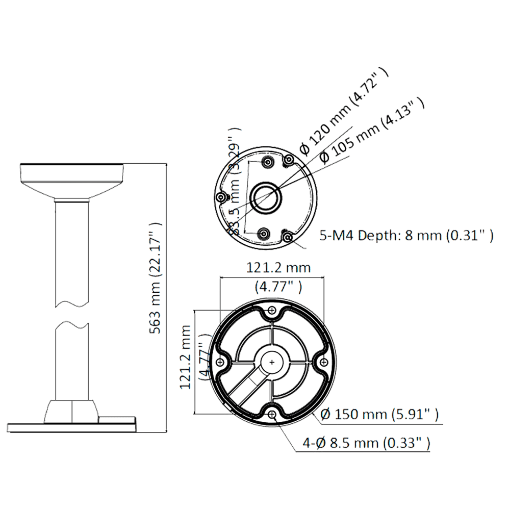 Suporte tecto – Altura 573 mm x 150 (Ø) mm – Apto para uso no exterior – Cor preto – Fabricado em alumínio – Passador de cabos