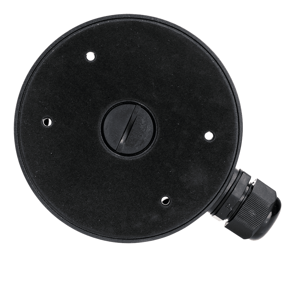 Caixa de conexões – Para câmaras dome – Apto para uso exterior – Instalação em tecto ou parede – Cor preta 42 (A) x 137 (Ø) mm – Passador de cabos