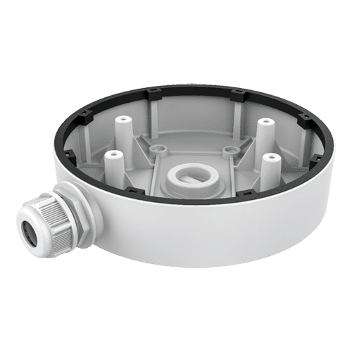 Caixa de conexões – Para câmaras dome – Apto para uso exterior – Instalação em tecto ou parede – Passador de cabos – Cor branca 36 (A) x 155 () mm