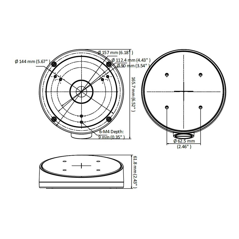Caixa de conexões – Para câmaras dome – Apto para uso exterior – Instalação em teto inclinado – Passador de cabos – Cor preta 62 (A) x 157 (Ø) mm