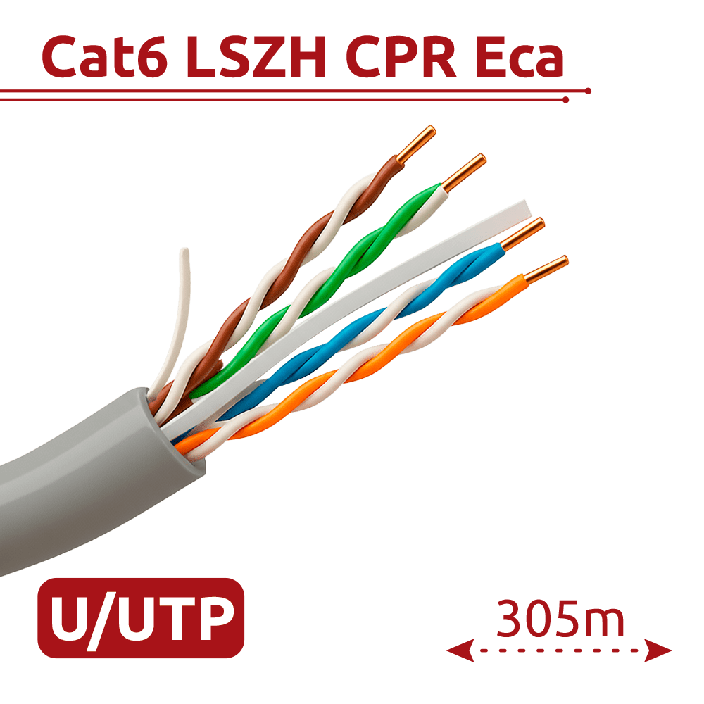 Hikvision cabo UTP categoria 6 – Condutor OFC, 99,5% cobre – Diâmetro 24 AWG-0,53mm – Certificado Eca/UL CM – Fornecido numa caixa de cartão de 305m. – Cobertura de cor branca