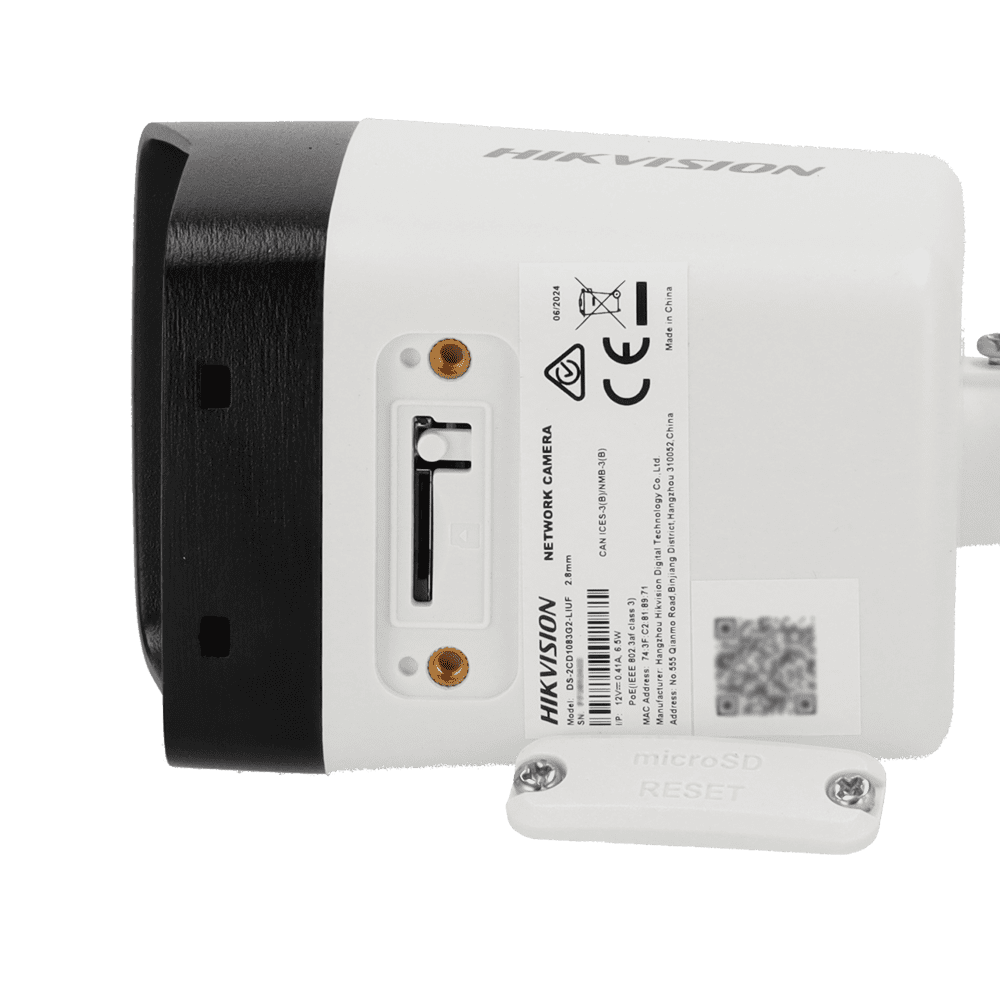 Câmara IP Bullet Hikvision – Gama Value – 8 MP | Lente 2.8 mm | microSD 512 GB – IV 30 m | WDR 120 dB | Microfone incorporado – PoE | H.265+| IP67 | Deteção de movimento 2.0 [%VAR%] – WEB, Software CMS, Smartphone e NVR