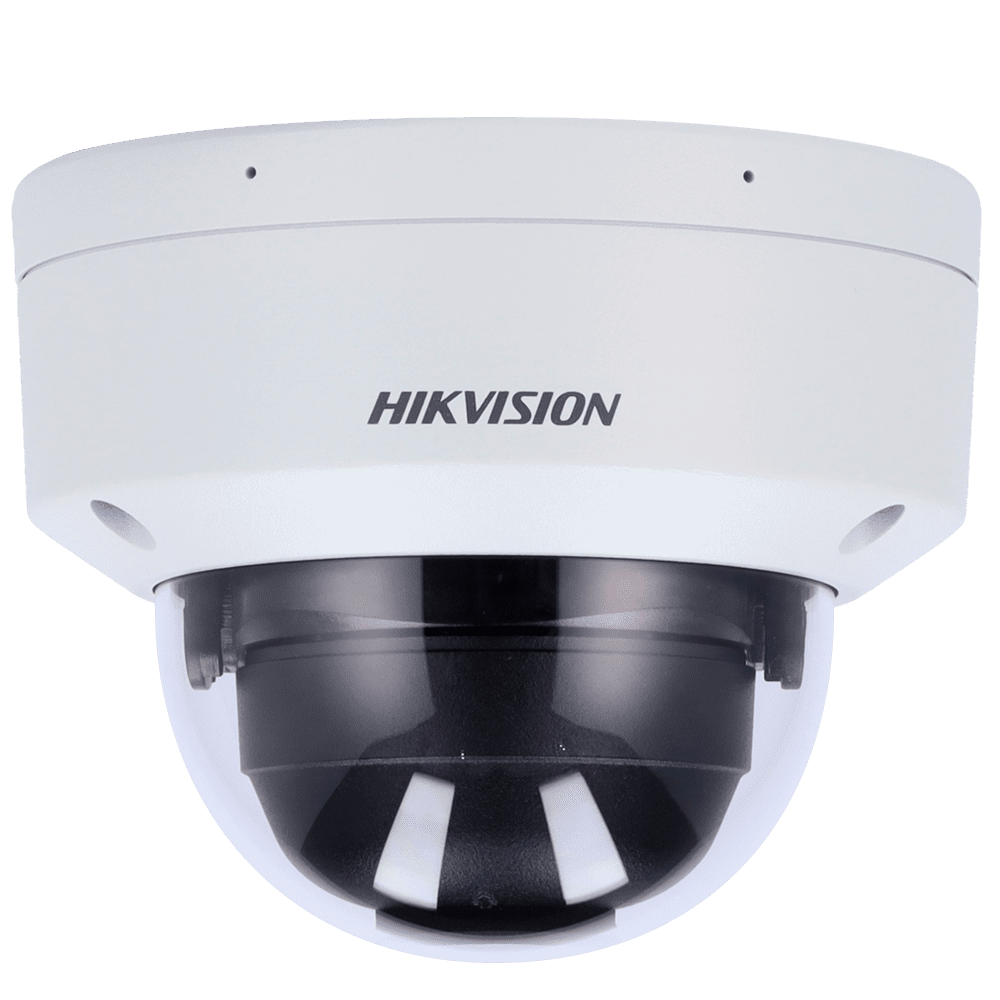 Hikvision – Câmara Dome IP da gama PRO – Resolução 2 Megapixel (1920×1080) – Lente 2.8 mm | Microfone duplo em matriz – Alcance da luz híbrida 30 m | PoE | MicroSD | IP67 – AcuSense | MD2.0 | Áudio | Alarmes | IP67 | IK10