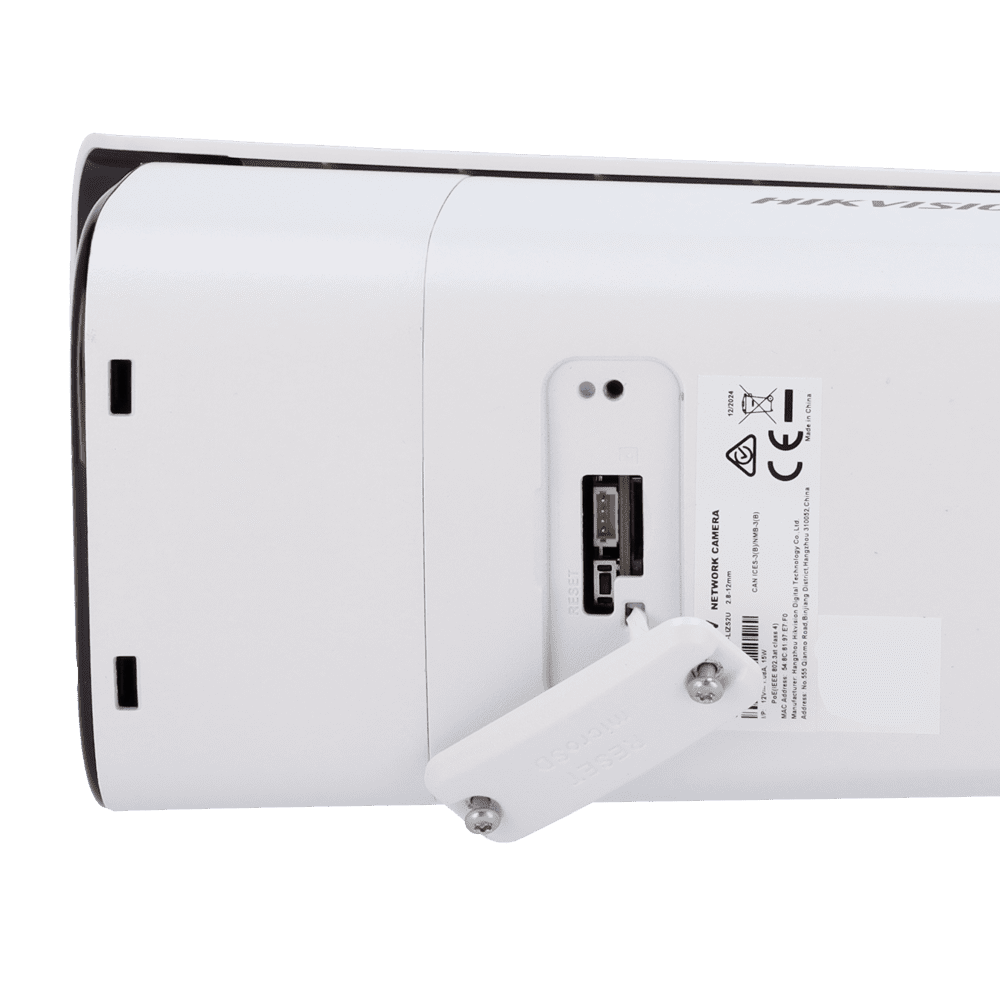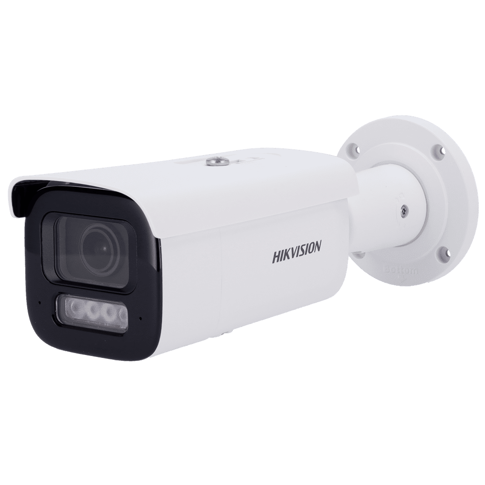 Hikvision câmara Bullet IP gama PRO – Resolução 2 Megapixel (1920×1080) – Lente varifocal motorizada 2.8~12 mm – Luz híbrida 60 m | Deteção de movimento 2.0 – AcuSense | PoE+ | MicroSD | IP67 | IK10 – Alarmes | Áudio | Microfone duplo em array