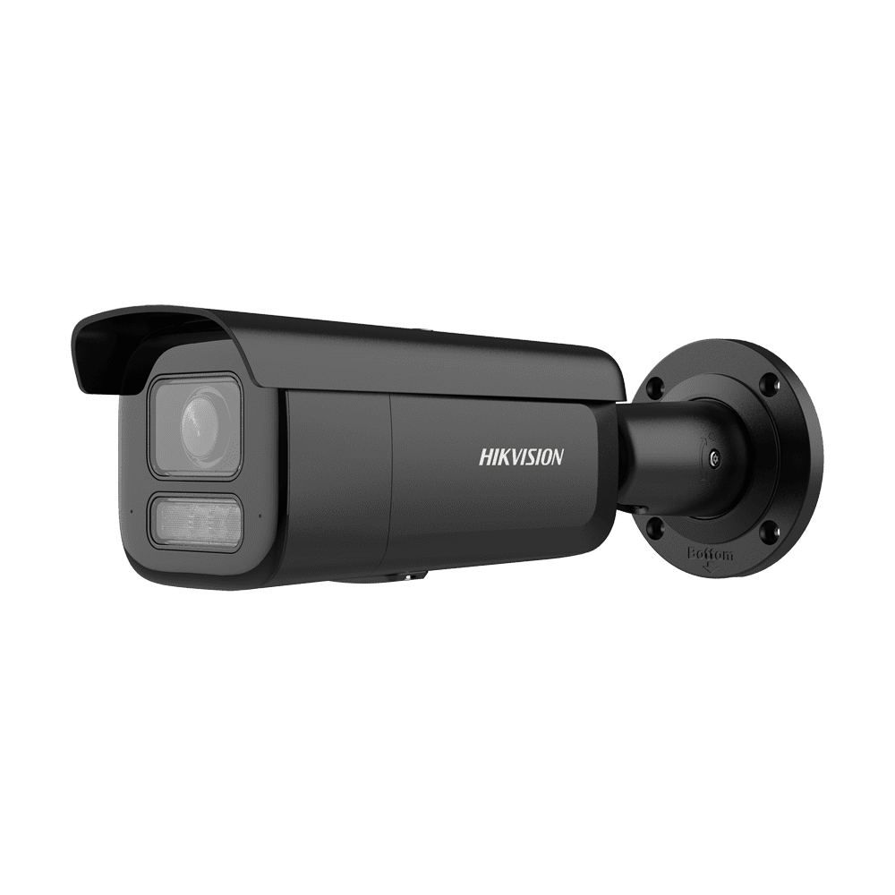 Hikvision cámara Bullet IP gama PRO – Resolución 8 Megapixel (3840×2160) – Lente varifocal motorizada 2.8~12 mm – Luz híbrida 60 m | MD 2.0 | Face Detection – Audio | Alarma | Micrófono | Flash disuasorio – AcuSense | PoE+ | IP67 | IK10 | MicroSD | Negro