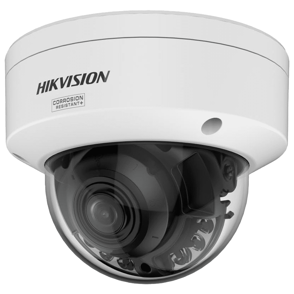 Hikvision câmara IP Domo gama PRO ColorVu3.0 – Resolução 4 MPx – Lente Motorizada 2.8~12 mm – ColorVu3.0: imagem a cores HIKAI-ISP F1.2 1/1.8″ – AcuSense3.0 | Luz híbrida 40 m – Alarmes IP67 | IK10 | NEMA 4X | PoE