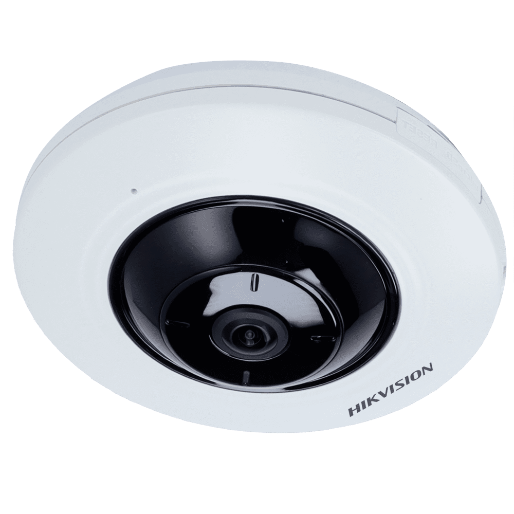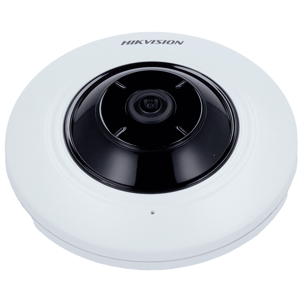 Hikvision – Câmara IP Fisheye 5 (2560×1920) Mpx [%VAR%] – Lente 1.05 mm Fisheye – IR LEDs Alcance 8 m – Microfone incorporado | PoE (IEEE802.3af) – Alarme | Áudio | Adequado para utilização em interiores
