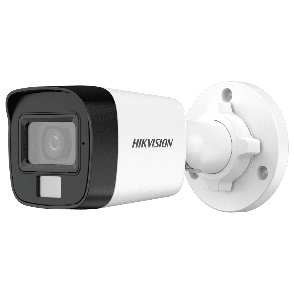 Câmara Bullet Hikvision 4en1 Gama VALUE – Resolução 2K (2304×1296) – Lente 2.8 mm – Luz híbrida (IV 25 m, luz branca 20 m) – Áudio sobre cabo coaxial | Microfone embutido – Impermeável IP67 | Plástico