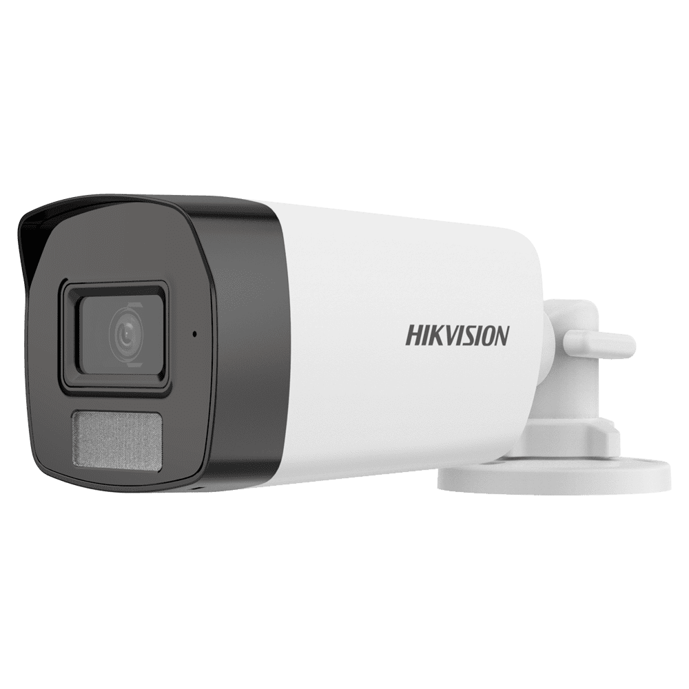 Câmara bullet Hikvision 4en1 Gama VALUE – Resolução 3K (2960×1665) – Lente 2.8 mm – Dual light: LEDs IR 40 m, luz branca 40 m – Áudio sobre cabo coaxial | Microfone embutido – Impermeável IP67