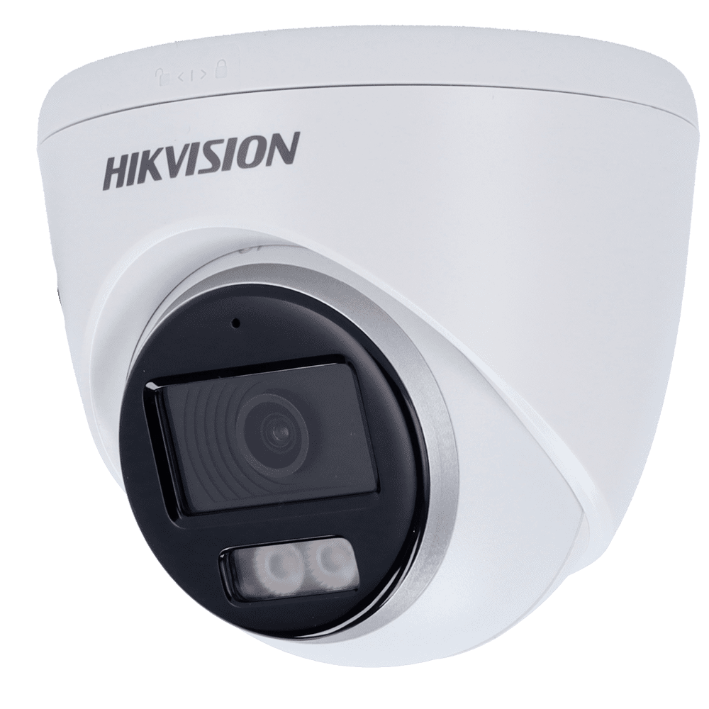 Hikvision – Câmara Dome 4en1 Gama VALUE – Resolução 1080p (1920×1080) – Lente 2.8 mm | ColorVu: Imagem a cores 24 horas – Alcance da luz híbrida 40 m – IP67 | Microfone embutido | Áudio sobre coaxial