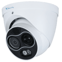 Câmara Térmica IP Dupla Hikvision Gama PRO – Sensor térmico 96×72 VOx | Lente 2.6 mm – Sensor óptico 1/1.8 4 Mpx | Lente 6 mm – Sensibilidade térmica 55mK | ColorVu – Deteção e alarme preventivos de incêndios – Alarmes | IP66 | IK10 | Áudio e luz dissuasivos