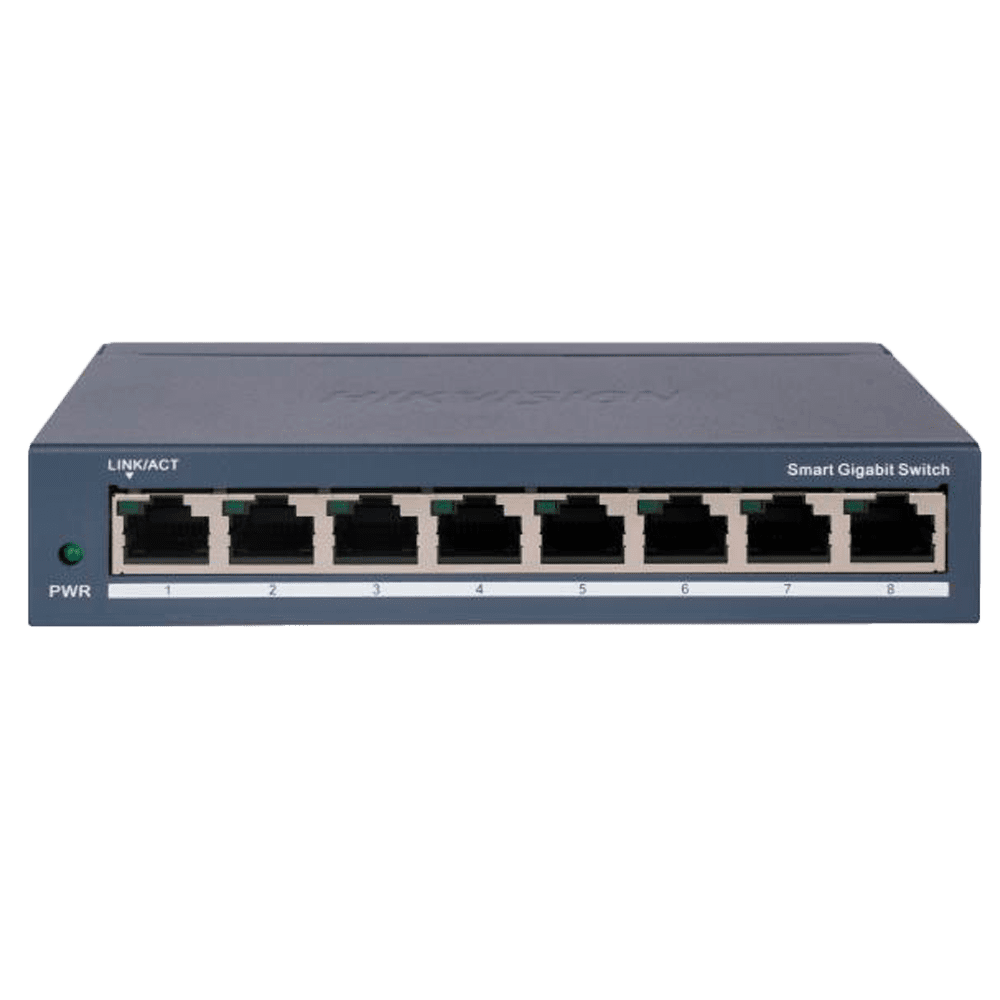 Hikvision Gigabit Switch Gerível – 8 RJ45 10/100/1000 Mbps – VLAN/Port Isolation/Loop Detection/LLDP – Link Aggregation/PoE Watchdog/SNMP