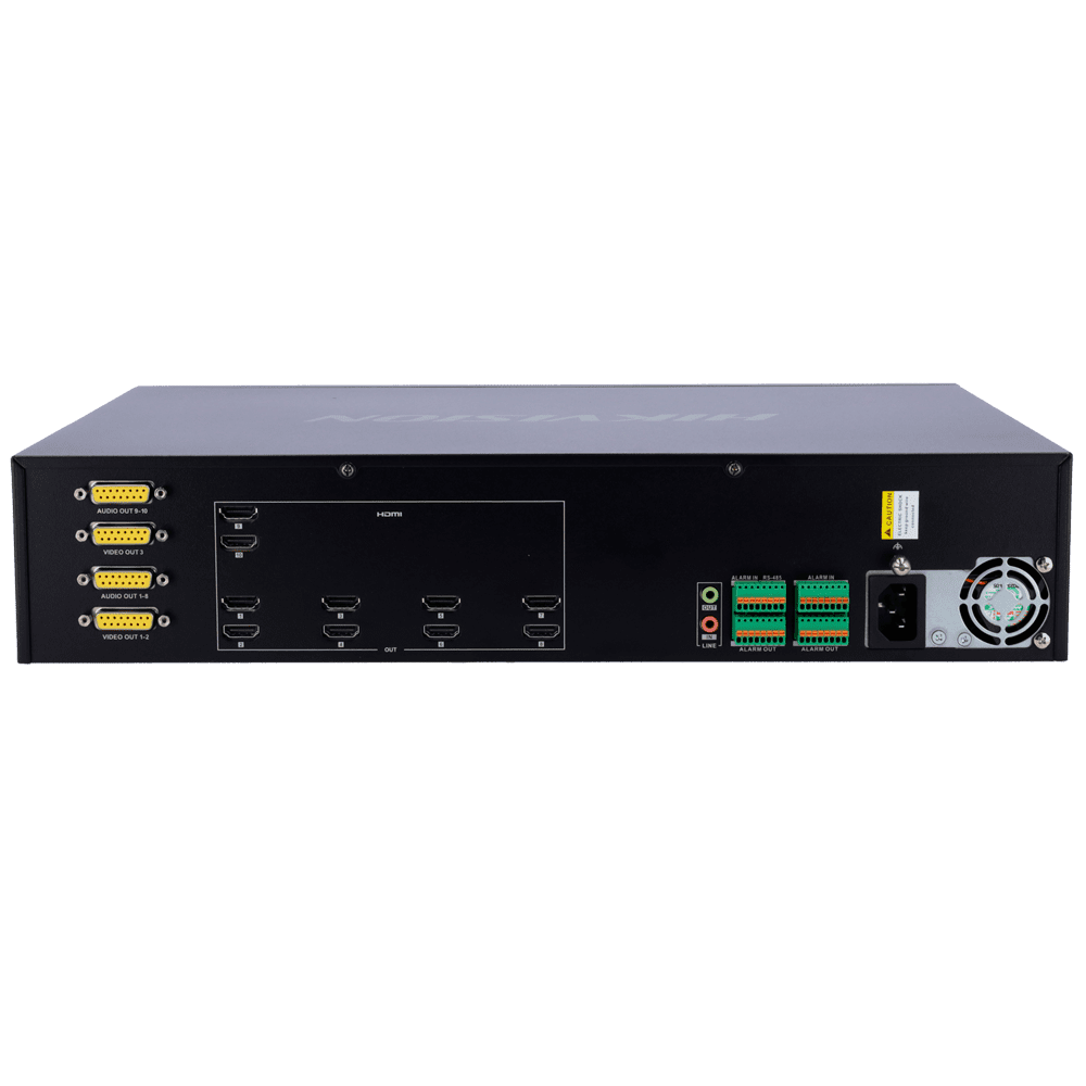 Descodificador Hikvision – 160 canais – Capacidade de descodificação 32 Mpx – 10 saídas HDMI 4K | 5 saídas DB15 a BNC – Áudio | Alarmes – Compatível com ONVIF
