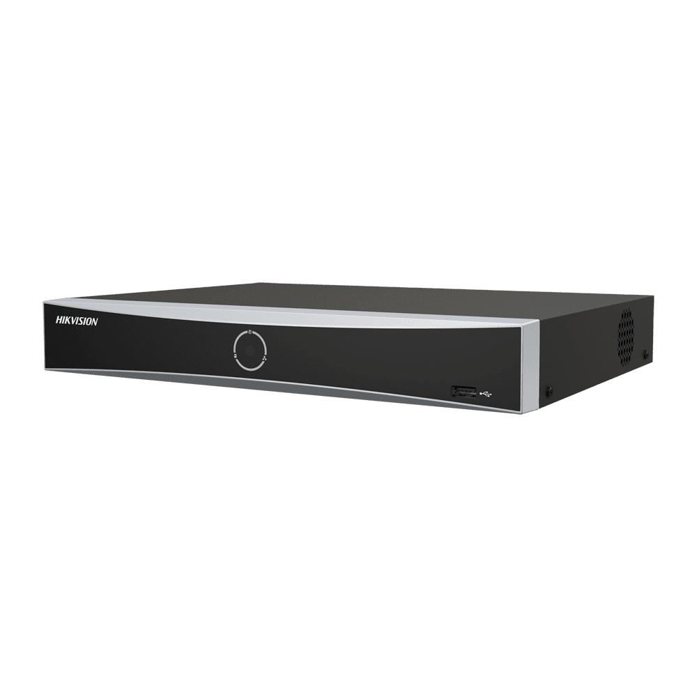 Gravador NVR Hikvision 8 Gama CH IP PoE PRO – 8 CH PoE IEEE 802.3af/at 75 W max – Resolução máxima 12 Mpx – AcuSearch | AcuSense | Reconhecimento facial – AcuSeek, pesquisa baseada em texto – Áudio | Alarmes | 1 HDD