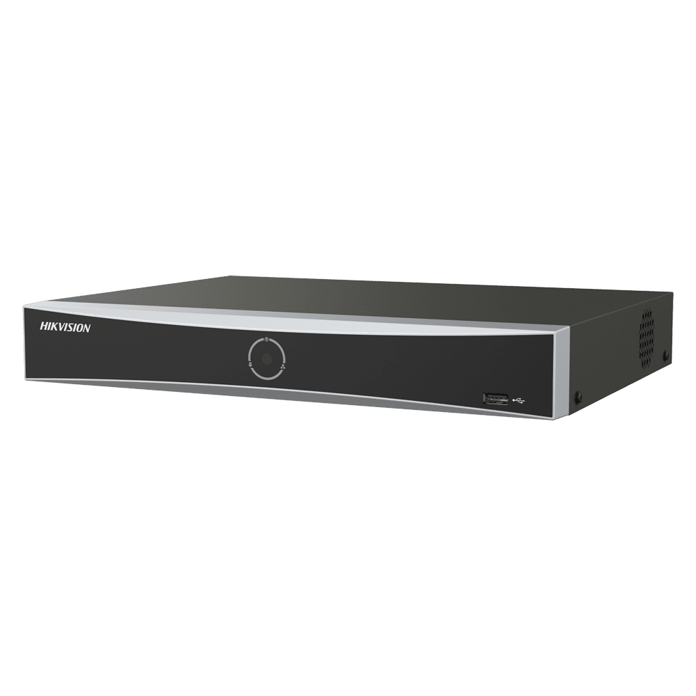 Hikvision gravador NVR 8 CH IP gama PRO – Resolução máxima 12 Mpx – AcuSearch | AcuSense | Reconhecimento facial – AcuSeek, pesquisa baseada em texto até 8CH – Áudio | Alarmes | 1 HDD – Largura de banda 80 Mbps