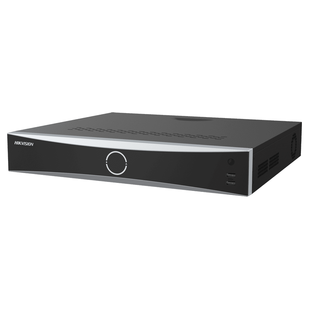 Hikvision gravador NVR 32 CH IP gama PRO – Resolução máxima 12 Mpx – AcuSearch | AcuSense | Reconhecimento facial – AcuSeek, pesquisa baseada em texto até 16CH – Áudio | Alarmes | 4 HDD – Largura de banda 256 Mbps