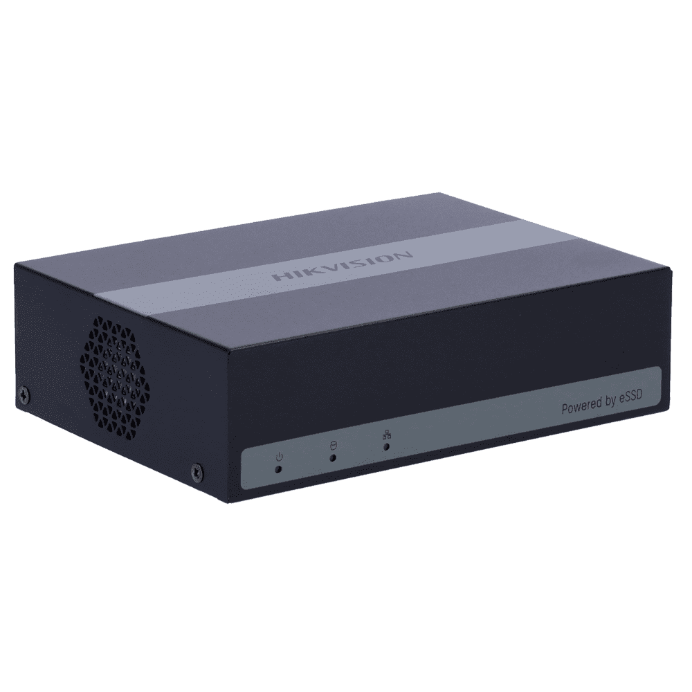 Hikvision DVR 5n1 – 4 CH HDTVI / HDCVI / AHD / CVBS – 1 Canal IP 6 MPx – Resolução máxima de entrada 5 MPx – eSSD integrado 512 GB | Baixo consumo de energia – Áudio coaxial | Deteção de movimento 2.0