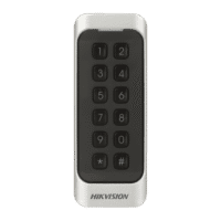 Leitor de acesso – Acesso por cartão MF e PIN – Indicador LED e acústico – Wiegand 26/34 | RS485 – Compatível com os controladores Hikvision – Apto para exterior IP65