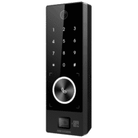 Controlo de acesso e presença – Facial, impressão digital, cartão MF e PIN – 500 utilizadores | 150.000 registos – TCP/IP, WiFi, USB e RS485 – 2.4″ TFT | Controlador integrado – iVMS-4200 | Hik-Connect
