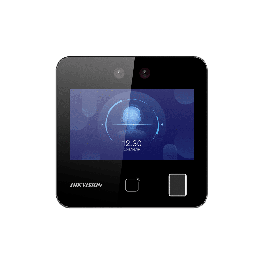 Controlo de acesso e presença – Facial, impressão digital, cartão MF e PIN – 1.500 utilizadores | 150.000 registos – TCP/IP, WiFi, USB, RS485 e Wiegand – 4.3″ Ecrã TFT sensível ao toque | Controlador integrado – iVMS-4200 | Hik-Connect