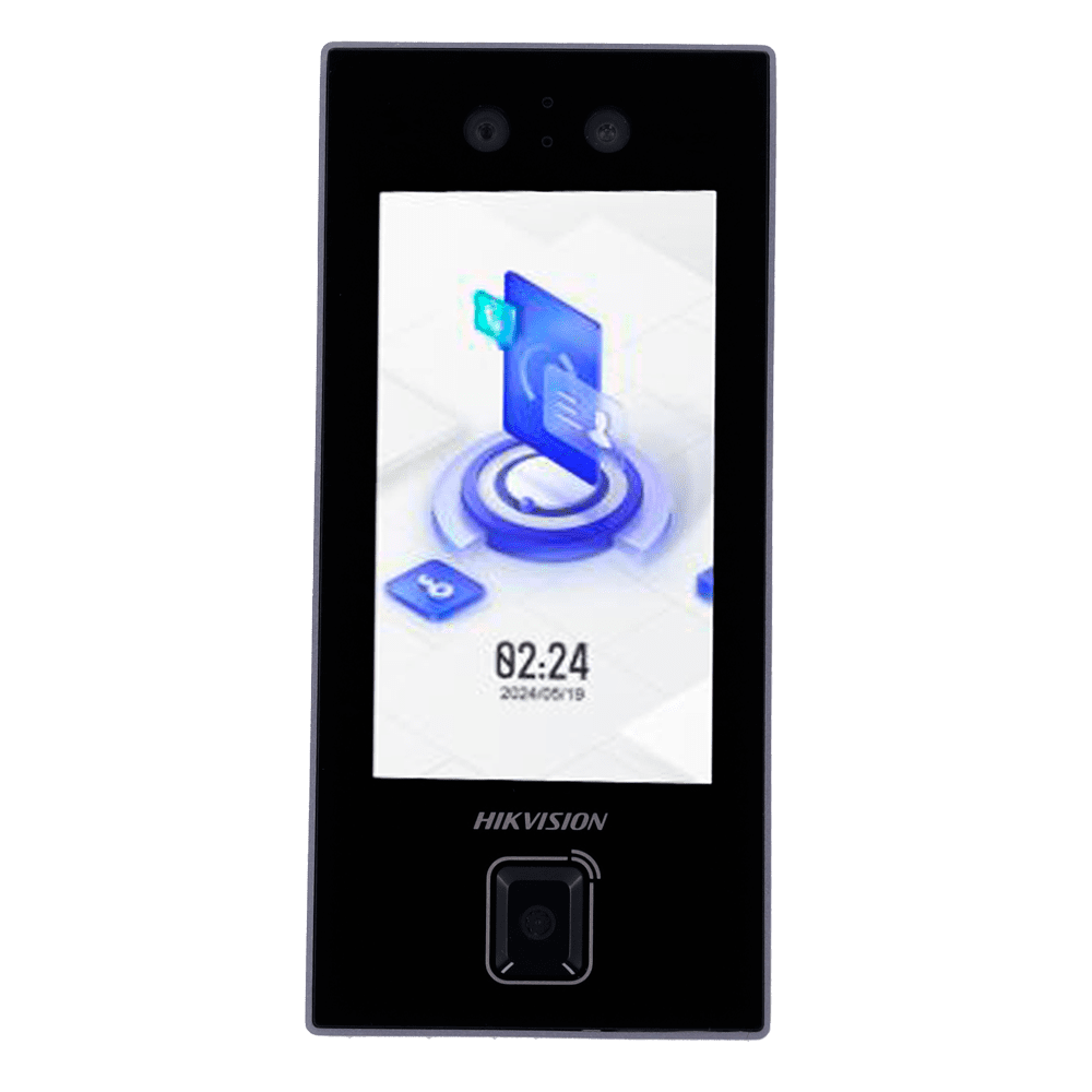 Controlo de acesso e presença PoE IP65 – Reconhecimento facial, cartão EM, código QR dinâmico e PIN – 3.000 utilizadores | 150.000 registos – TCP/IP, WiFi, USB, RS485 e Wiegand – 4.5″ Ecrã TFT sensível ao toque | Controlador integrado – iVMS-4200 | Hik-Connect