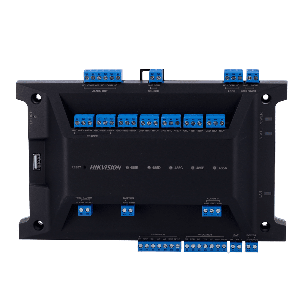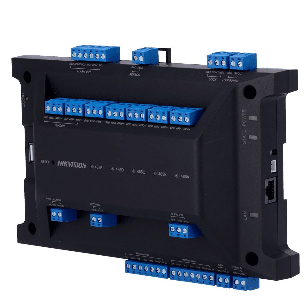 Controlador de acesso multi-identificação – Facial, impressão digital, cartão, QR ou PIN – 1 porta | comunicação TCP/IP e RS485. – 2 leitores por Wiegand | 2 leitores por OSDP – Sem caixa – Software incorporado | iVMS-4200