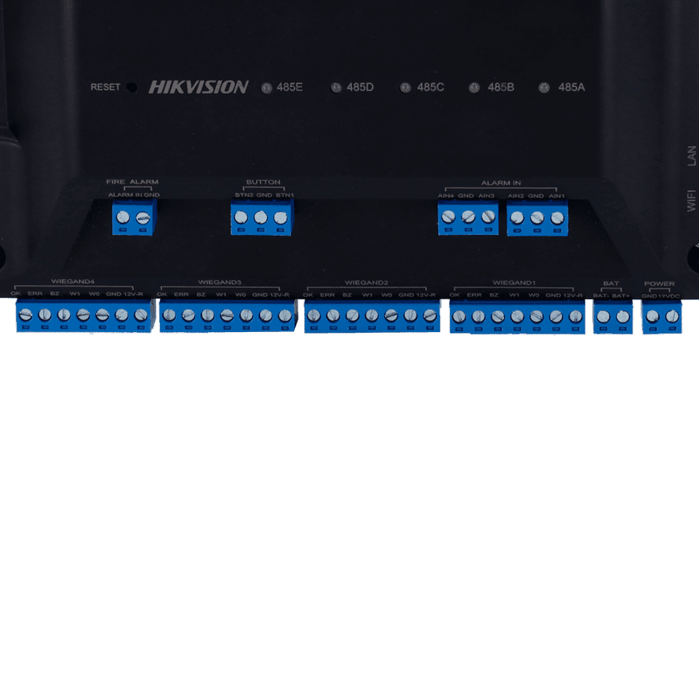 Controlador de acesso multi-identificação – Facial, impressão digital, cartão, QR ou PIN – 2 portas | comunicação TCP/IP, WiFi e RS485. – 4 leitores por Wiegand | 4 leitores por OSDP – Sem caixa | PoE – Software incorporado | iVMS-4200