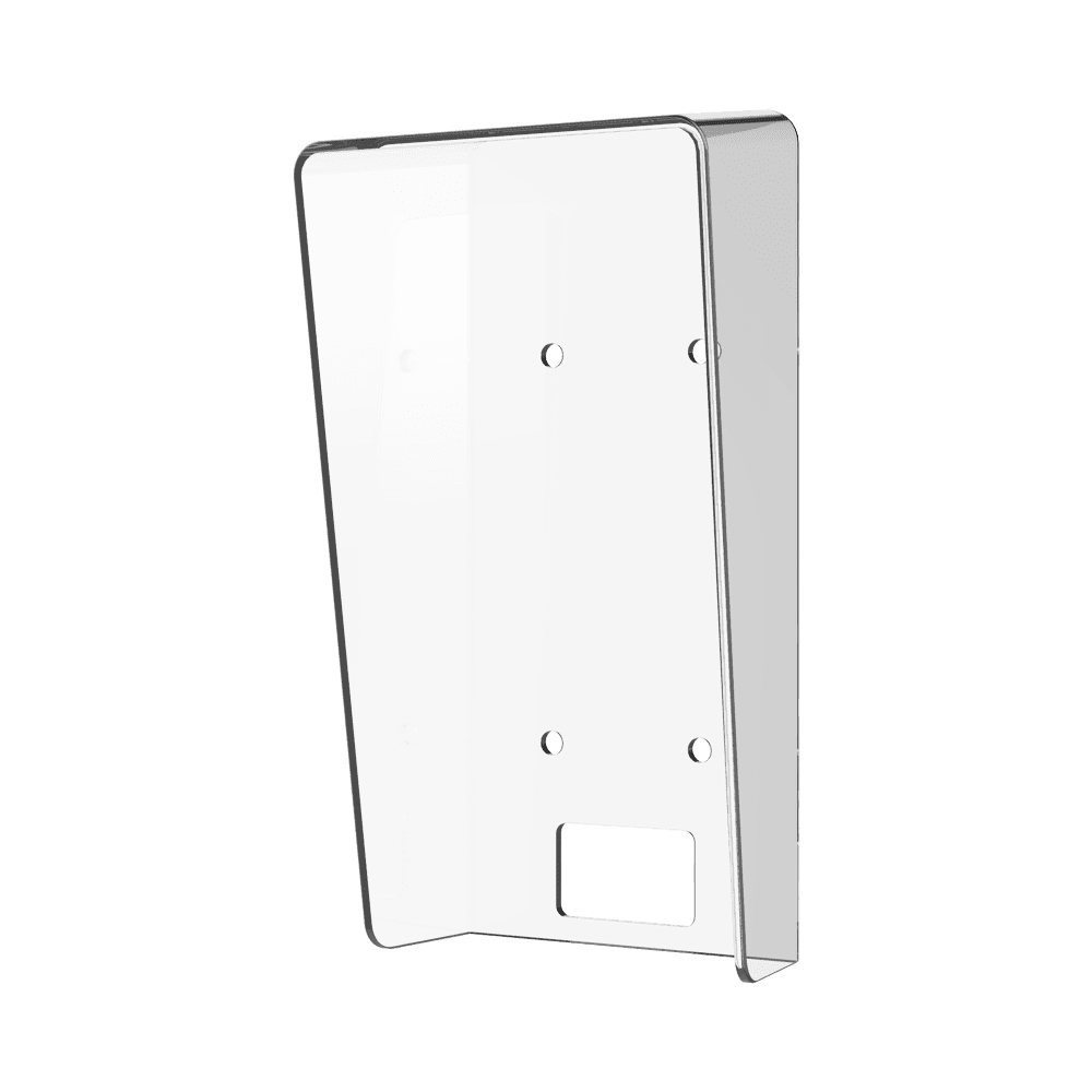 Montagem em superfície com viseira – Específico para videoporteiros – Compatível com DS-KV61x3-xPE1 – Orifícios de conexão – 150 (Al) x 80 (Lg) x 49 (Fd) mm – Fabricado em metacrilato