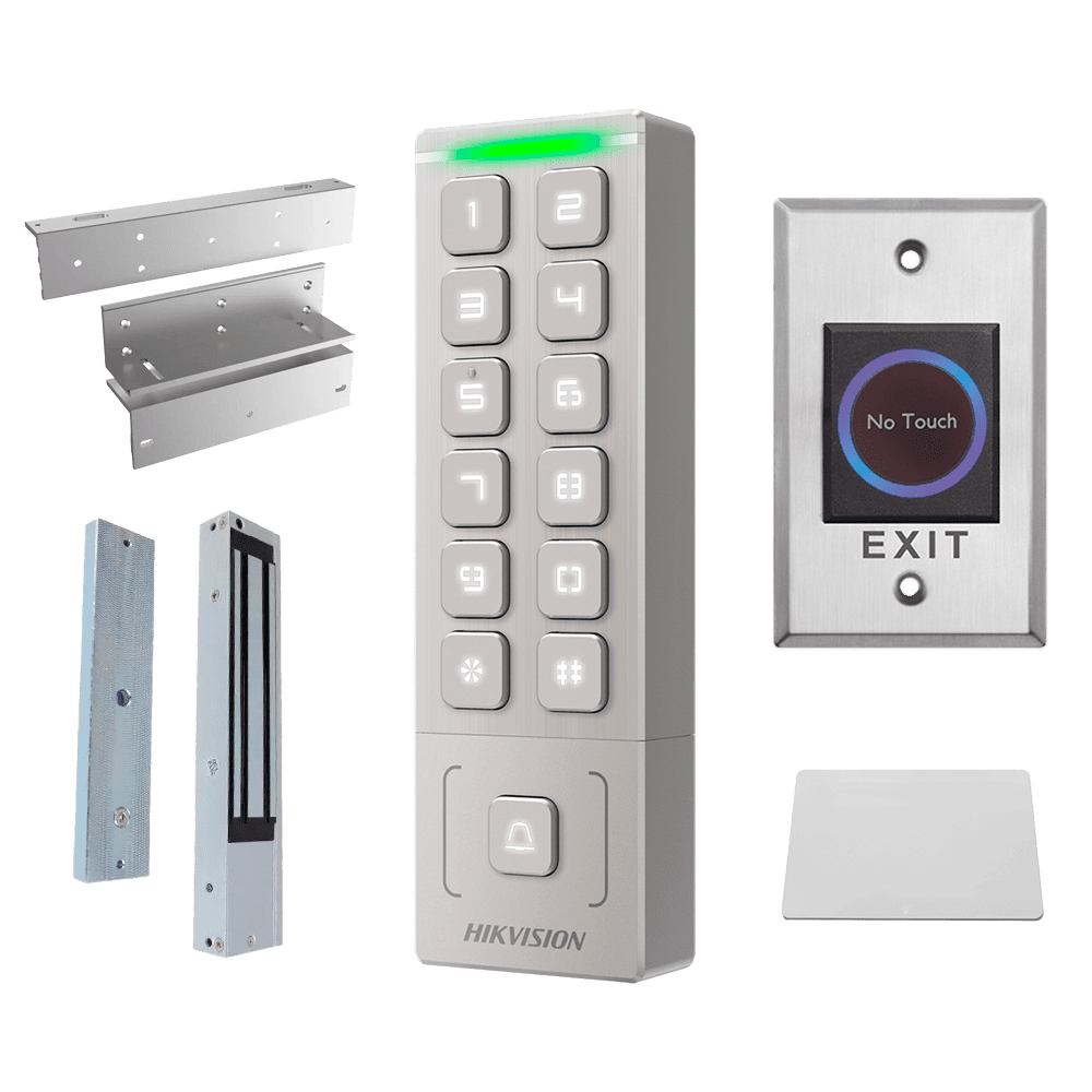 Kit de controlo de acesso – Cartão MF e PIN – Autónomo, ventosa, perfil, botão de pressão e cartão – Controladora integrada – Montagem na superfície