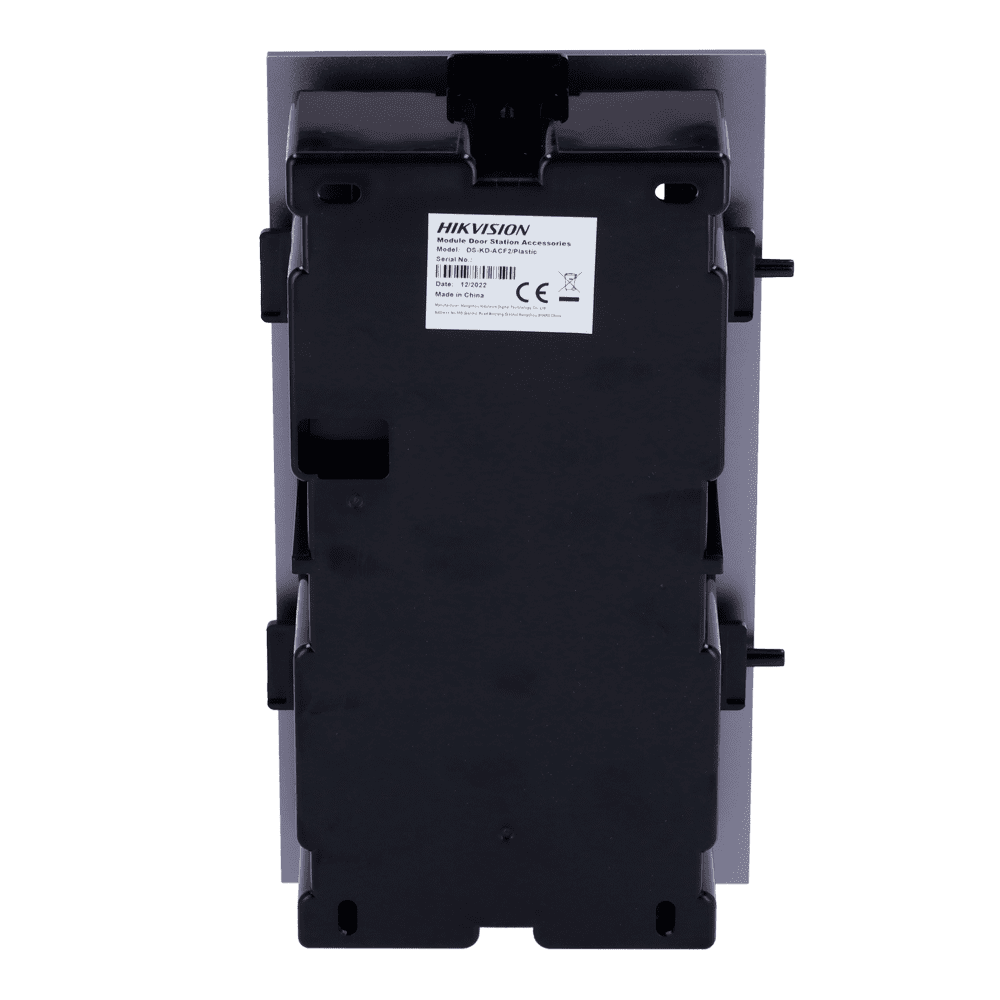 Painel frontal e caixa de registro encastrada – Até 2 módulos – Específico para video porteiros Hikvision – Compatível com os módulos Hikvision – Caixa de plástico – Painel Fabricado com Alumínio