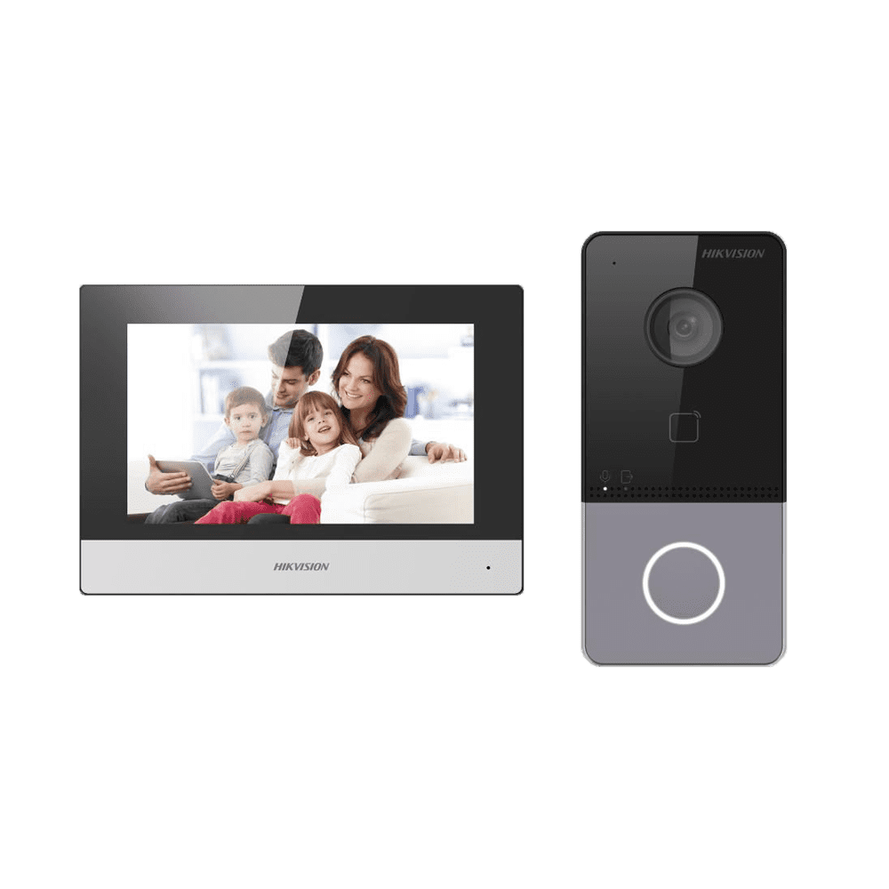Kit de videoporteiro – Tecnologia IP & WiFi – Placa e monitor | Permite 16 monitores mais – Leitor MF | PoE – Aplicação móvel P2P (ativação a partir do wizard monitor) – Montagem à superfície | IP65