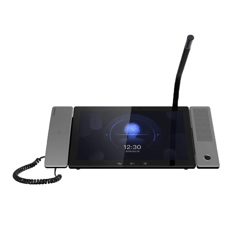 Monitor principal para sistemas de vídeo porteiro – Ecrã tátil IPS 10.1″ – Áudio omnidirecional – TCP/IP, SIP | 2 saídas de relé – Ranhura microSD até 128 GB – Telefone para comunicação