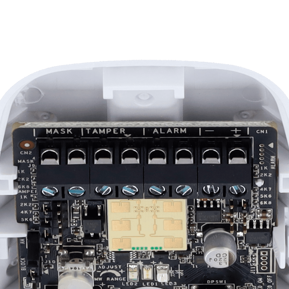 Detetor com fios de tecnologia dupla – Anti masking e anti-ocultação – Faixa de detecção 15 m – Resistências de fim de linha (EOL) seleccionáveis – Alimentação 9~16 VDC – Certificado Grau 2