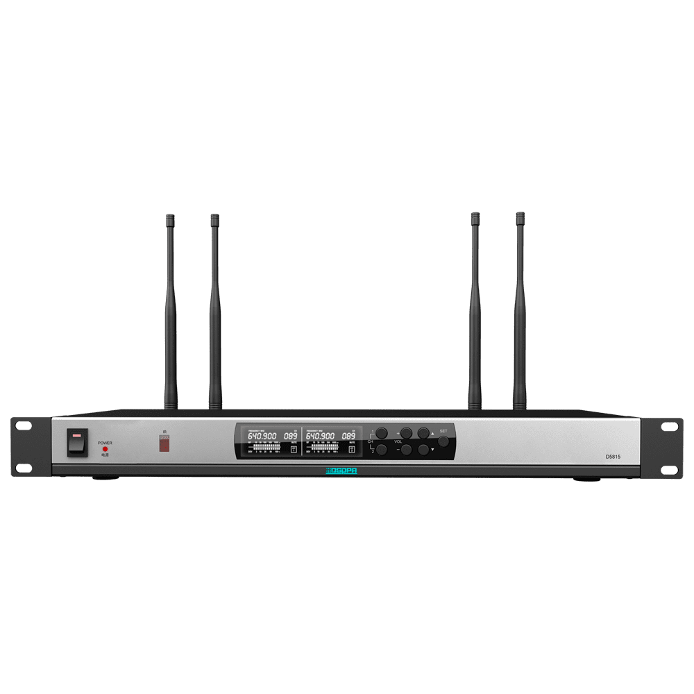 Recetor de microfone sem fios – Duplo canal – Emparelhamento mediante IV – Controlo de volume para cada canal – Saída XLR – Compatível com microfones DSPPA-D58XX