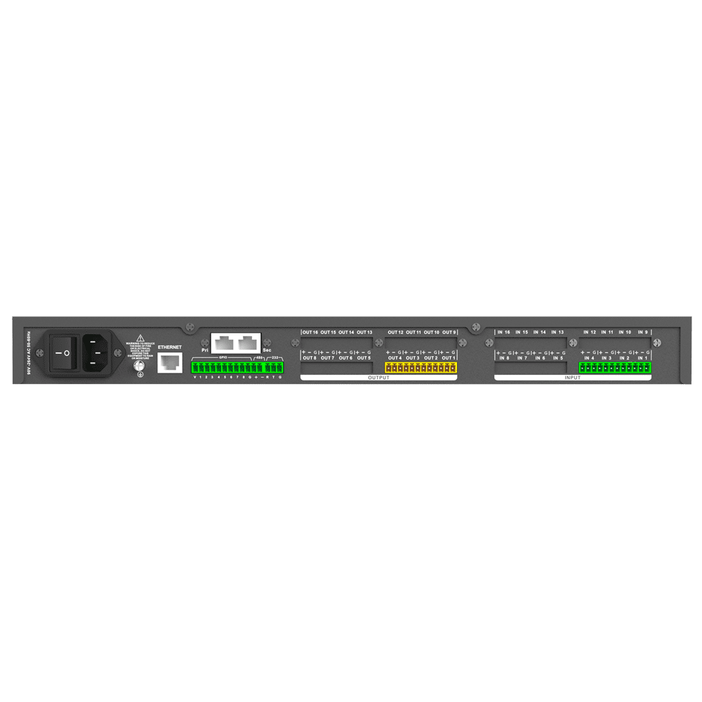 Processador de áudio – 4 entradas e 4 saídas – Equalizador – Controlo automático de ganância – Cancelamento do eco – Controlo ativo do ruído