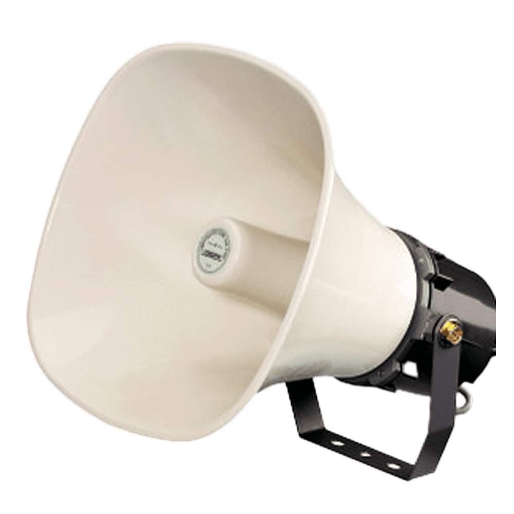 Buzina à prova de água – Apta para exterior – Alimentação 70V/100V – Suporte incluído – Sensibilidade 105dB – SPL máx. 117dB