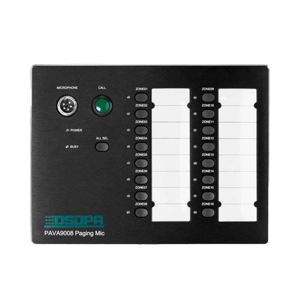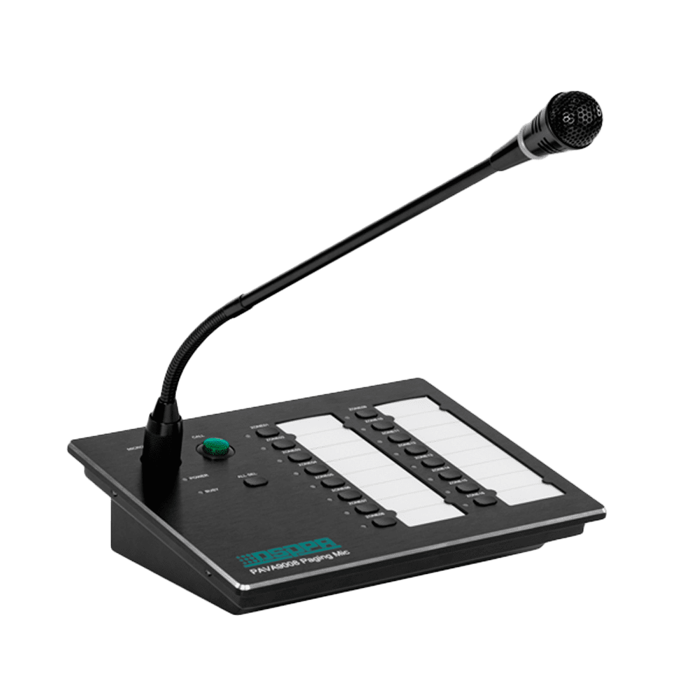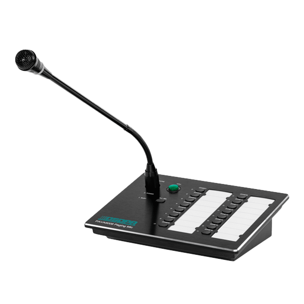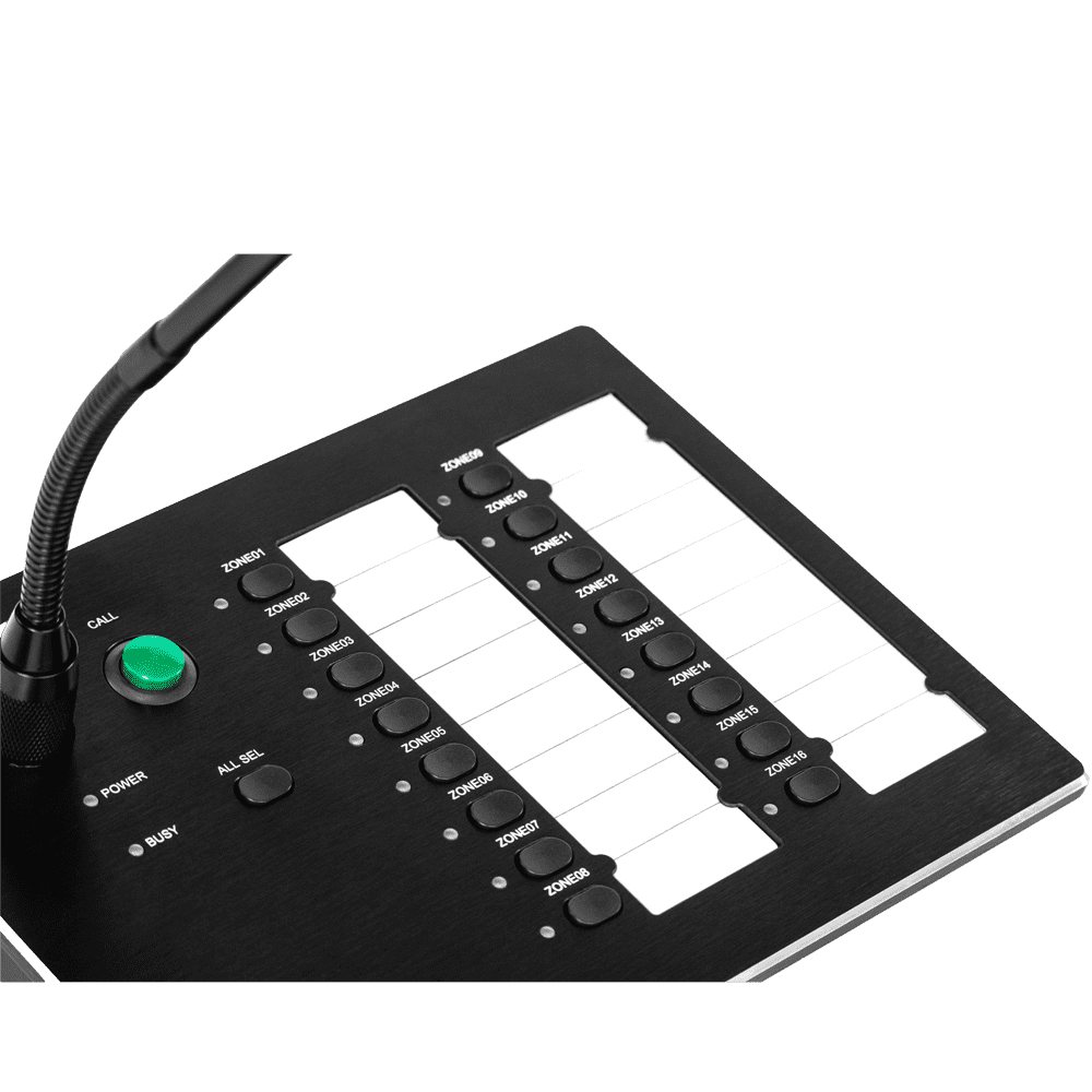 Microfone de mesa – Anúncios gerais e de emergência – 16 teclas de seleção de zona – Utilização manual e programada – Suporta teclado de expansão