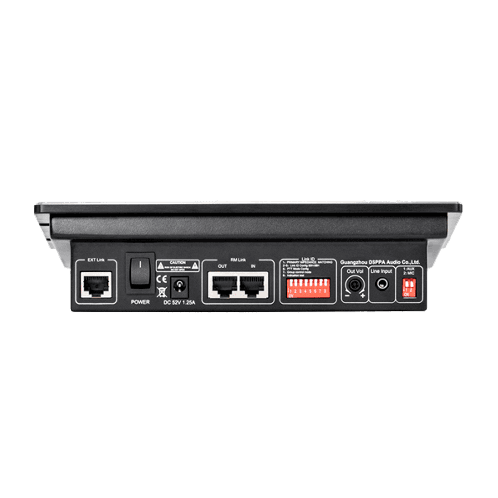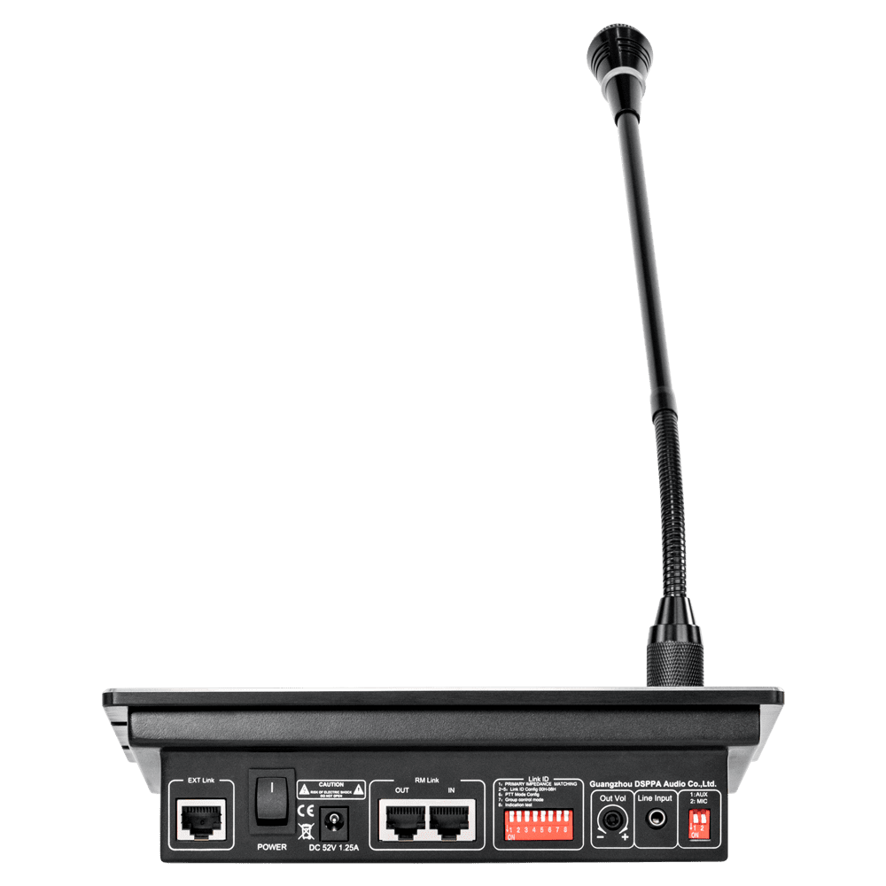 | Portas | – 1 x RJ45 (Ligação com teclado de expansão) – 2 x RJ45 (ligação em cascata com outros microfones) – 1 x LINE IN (Jack 3.5mm)) |