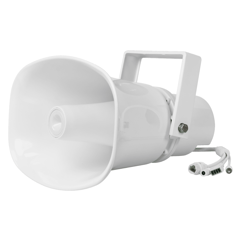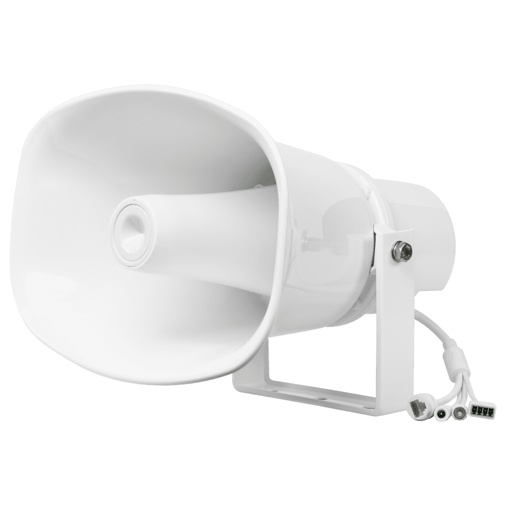 Buzina IP – Protocolo ONVIF – Formatos MP3 e WAV – PoE+ ou DC – Plástico ABS