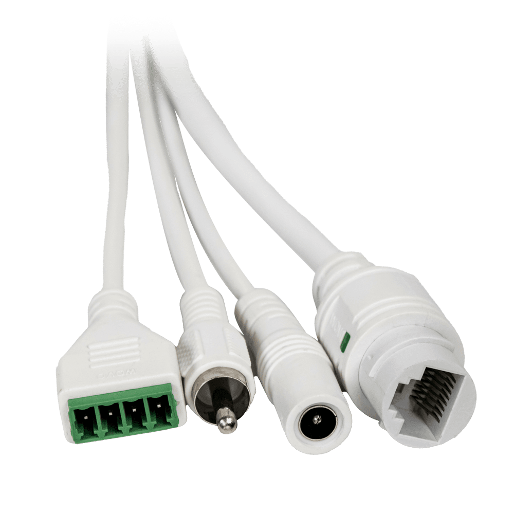 | Ligações | 1 x RJ45 4 x Euroblock (1-2 entrada de disparo de alarme 3-4 nó aberto em modo comum) 1 x LINE IN 1 x Alimentação |