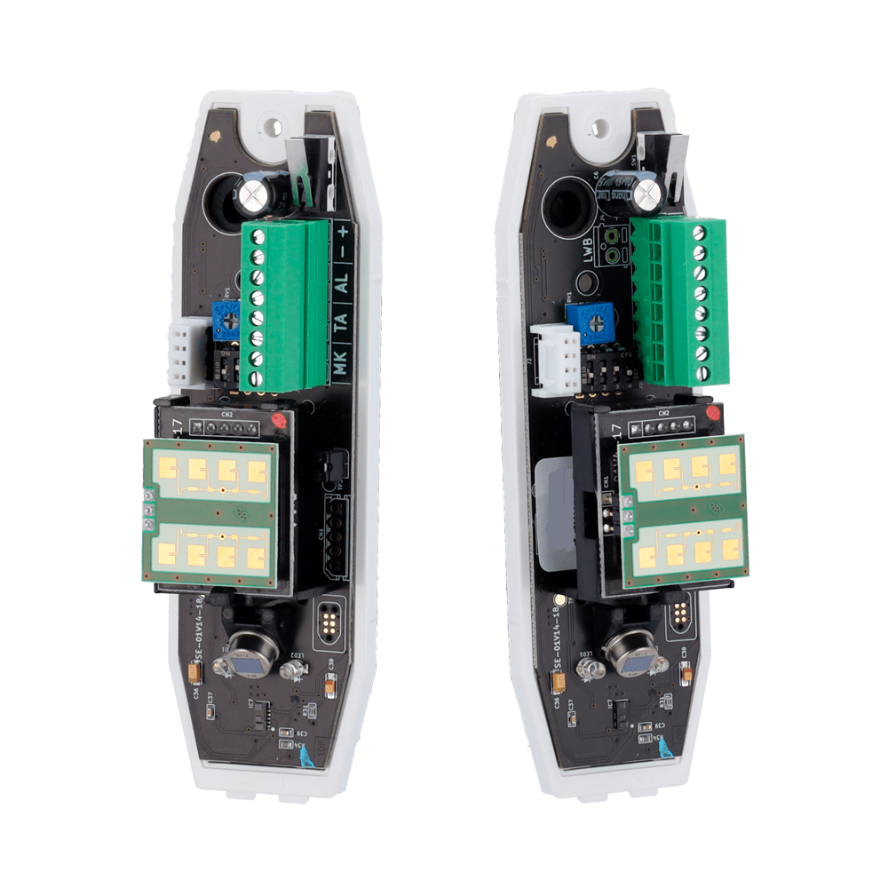 Detector exterior com fio Duevi – PIR tipo cortina e micro-ondas (24 GHz) – Gama de deteção 12 m / Antimasking – Alimentação elétrica 9.6 ~ 14.5 VDC – Compatível com sistemas de alarme com fios – Uso exterior IP54