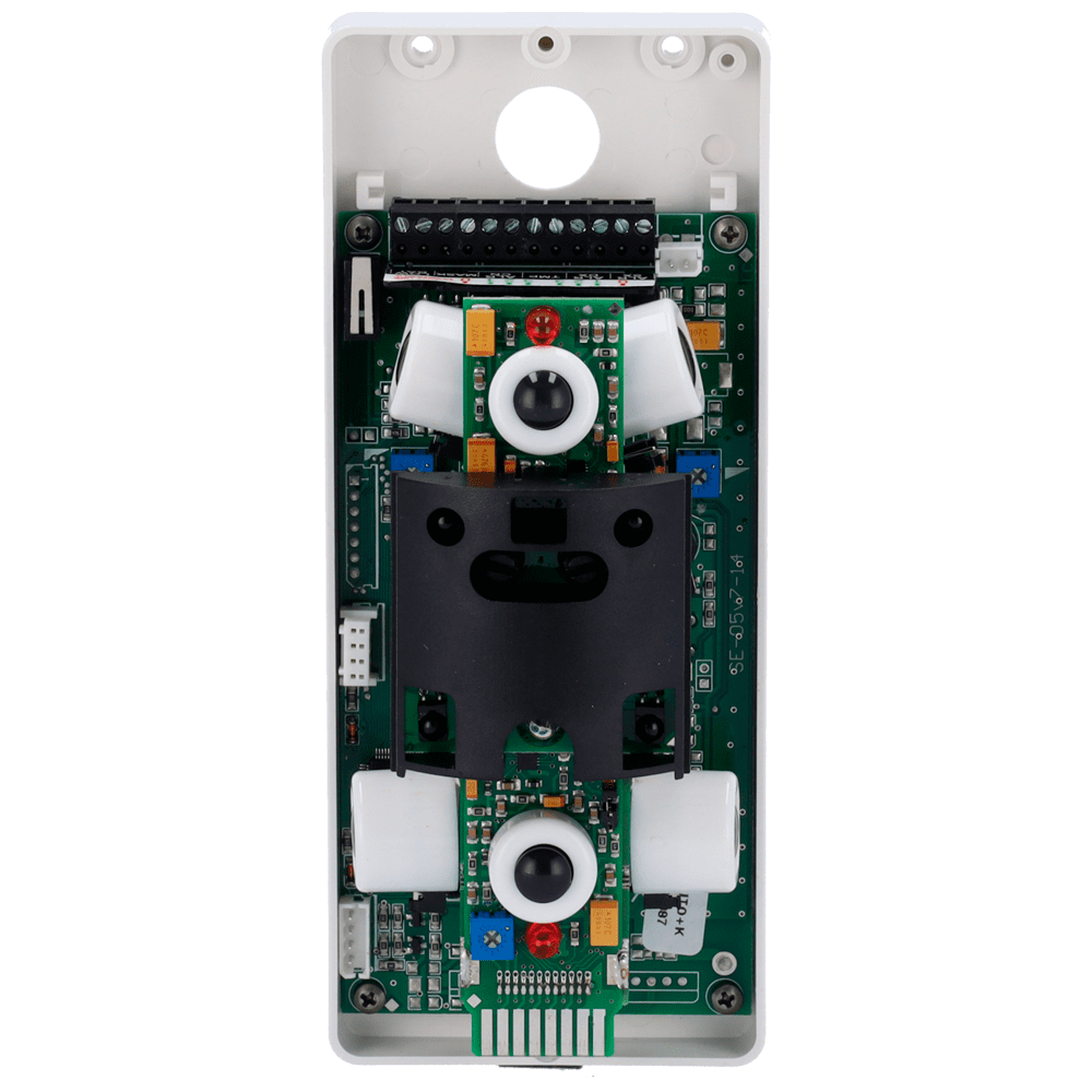 Detetor de poupança de energia para exterior Duevi – Pronto para integrar transmissor de terceiros – PIR duplo em cada lado e PIR duplo frontal – Cobertura total 180º / Antimasking – Fonte de alimentação com 2 baterias CR123A – Uso exterior IP54 / Antivandalismo IK10