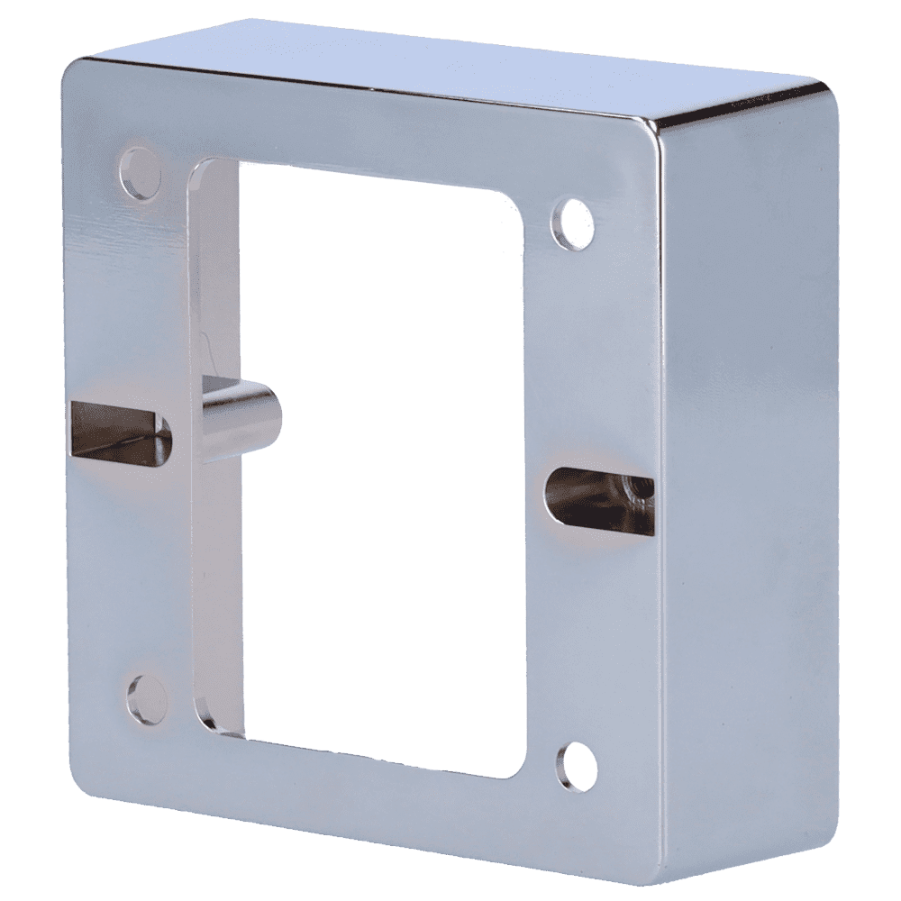 Caixa para interruptores – Compatível com a seleção de produtos – Instalação em superfície – fabricado em liga de zinco – Dimensões 86 (A) x 86 (L) x 30 (P) mm – Orifício para conexões