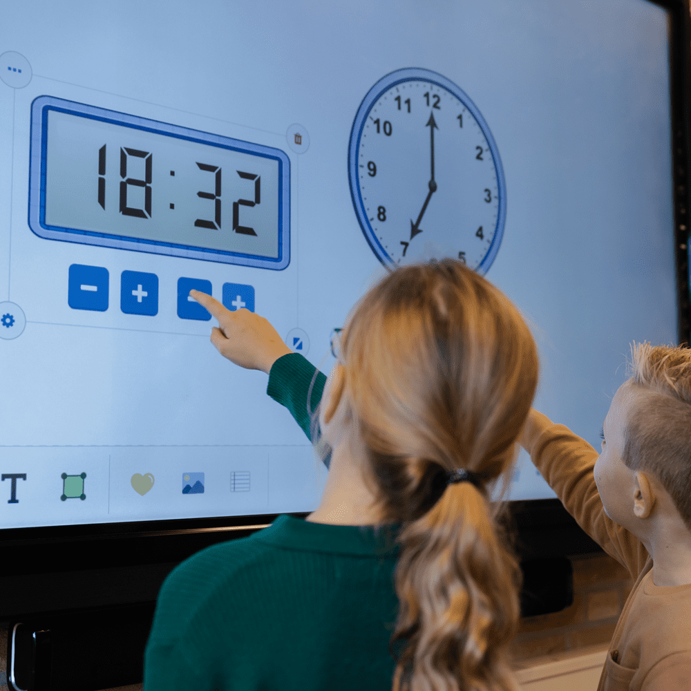 | Quadro digital | Concebida para tornar as aulas mais interativas, visuais e participativas. Permite aos professores criar e apresentar aulas que combinem escrita, multimédia e atividades numa única plataforma. Tudo isto graças ao facto de ser possível: – Escrever, desenhar e destacar em tempo real – Adicionar conteúdo multimédia (imagens, vídeos ou áudio) – Incluir atividades interativas, jogos e questionários – Utilizar modelos e fundos – Criação de várias diapositivas – Reconhecimento de formas e escrita – Gestos táteis e multitáteis |
