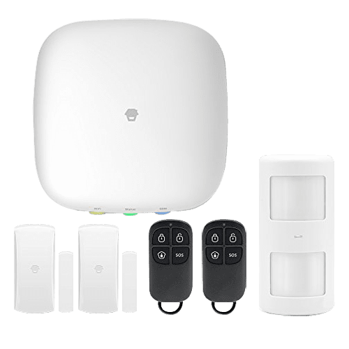 Sistema de alarme e Smart Home – Painel com módulo Wi-fi e GSM / GPRS – Envio de notificações push e chamada – 1 Detector PIR volumétrico – 2 contactos magnéticos porta/janela – 2 comando para controlo remoto