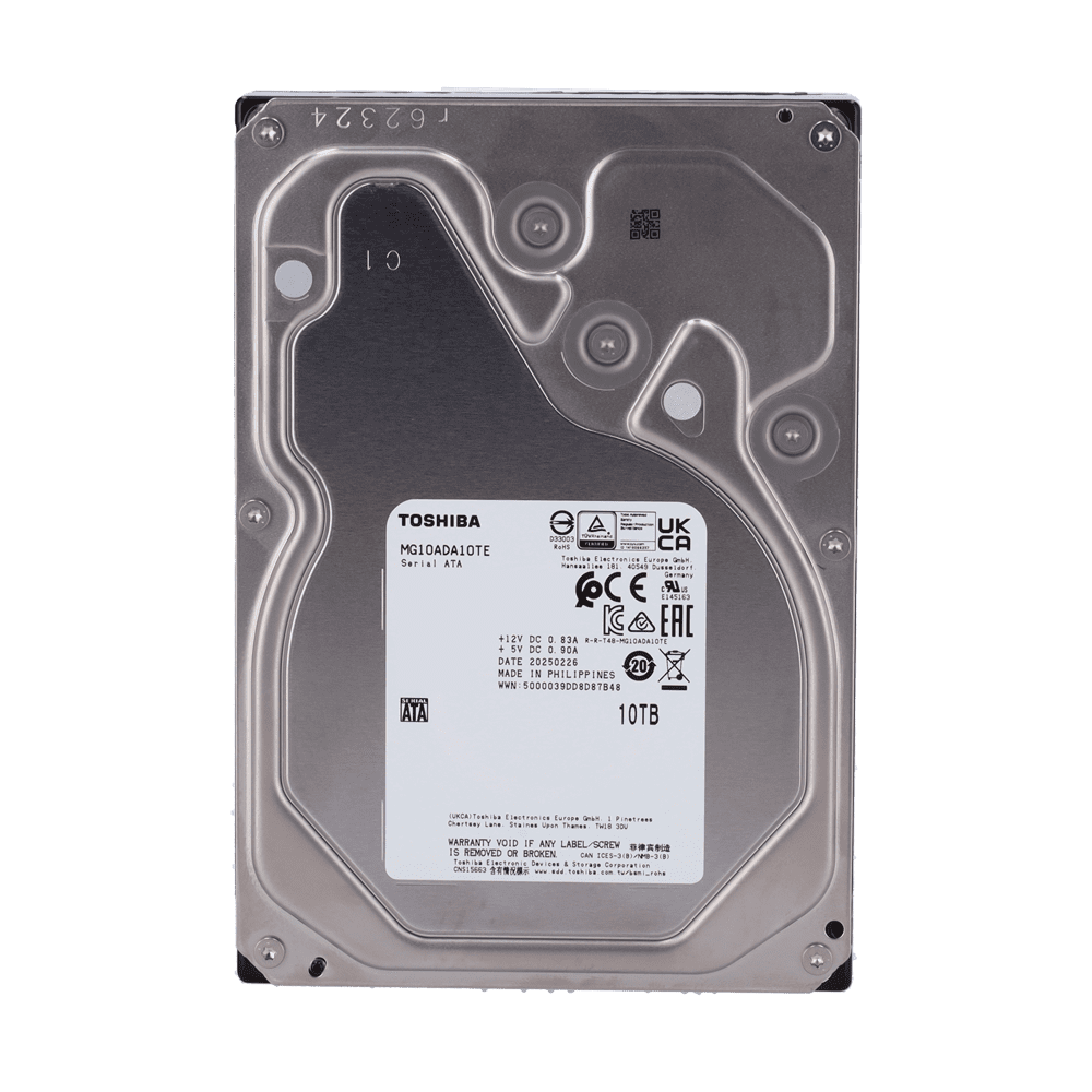Disco rígido Toshiba S300 AI MG10ADA10TE – Capacidade 10 TB – Interface SATA 6 GB/s – Concebido para sistemas NVR com IA – Solto ou instalado em DVR – Suporta até 32 transmissões de IA