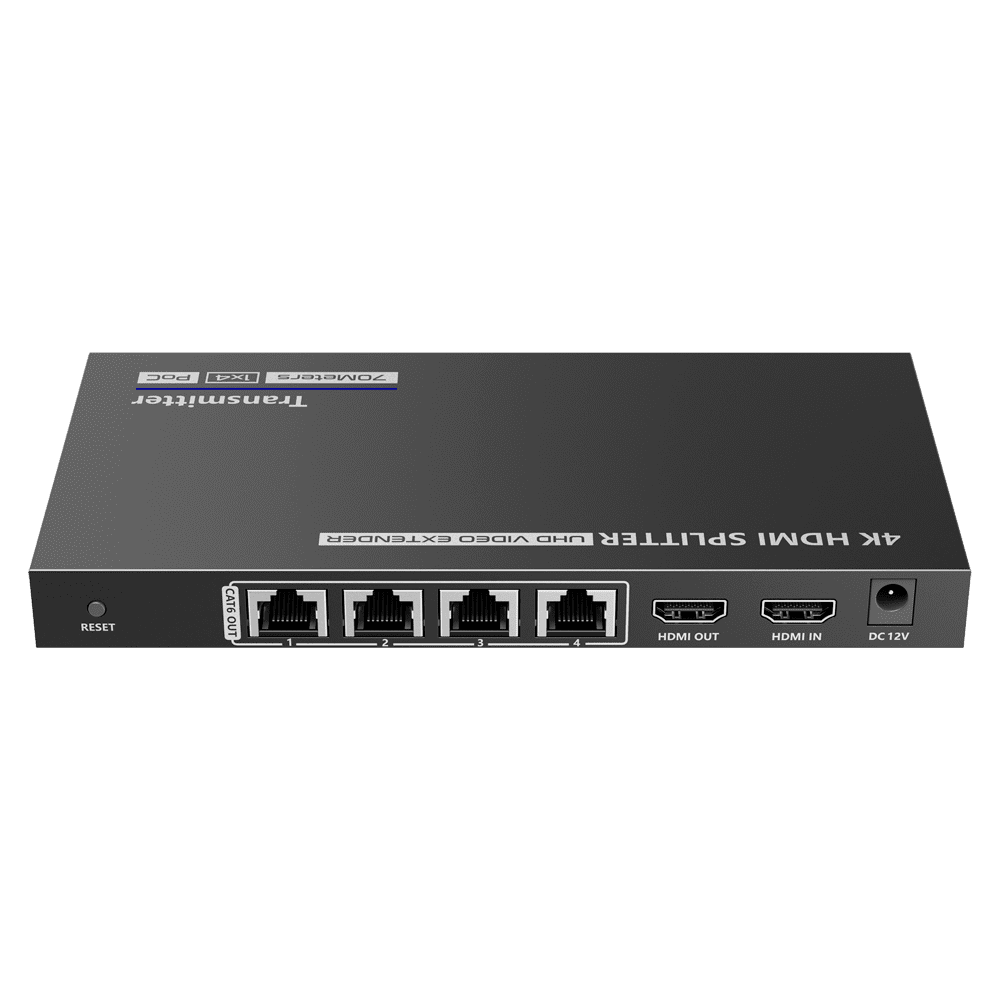 Extensor divisor de sinal HDMI – Alcance 40 m – Resolução 4K – Permite ligações 1:4 – HDMI Loop out – POC – Cabo de alimentação eléctrica