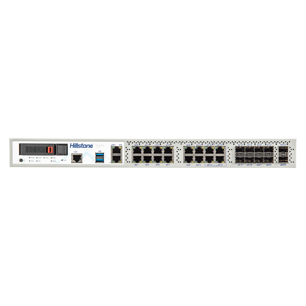 Hillstone Networks NGFW – Hardware + 1 año de servicio básico – 20Gbps FW/6.5Gbps NGFW Throughput – 3M Sesiones Concurrentes – 16×GE (2 bypass) + 8×SFP + 2×SFP+ – Rack 1U / Expansión hasta 1.92Tb / Fuente Dual