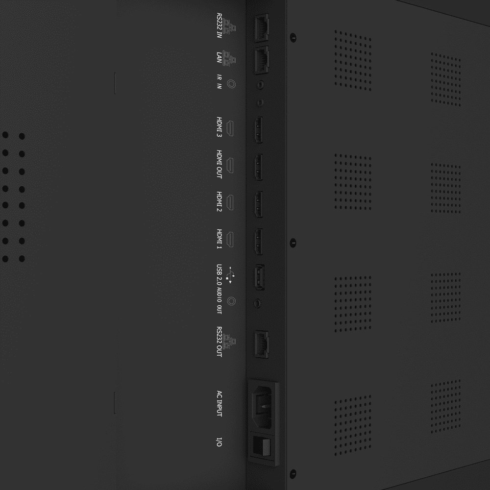 Monitor videowall 55″ – Resolução FHD – Brilho 500 nit – Moldura 2,9 mm (A-A) – Funcionamento 24/7 – Orientação horizontal e vertical